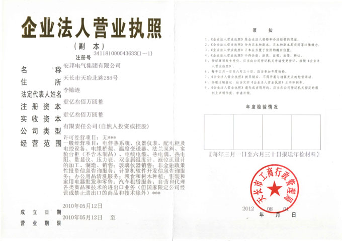 辦公室訊:2012年3月15日,安邦電氣集團(tuán)有限公司成功將注冊及實收資本從兩千三百萬元增至一億零三佰萬元,這是一個振奮人心的好消息,是辦公室員工及財務(wù)精英們幾日不辭勞苦輾轉(zhuǎn)于工商局和銀行之間交流、溝通共同協(xié)作努力的碩果,是走向“揚眉吐氣”的奠基石。